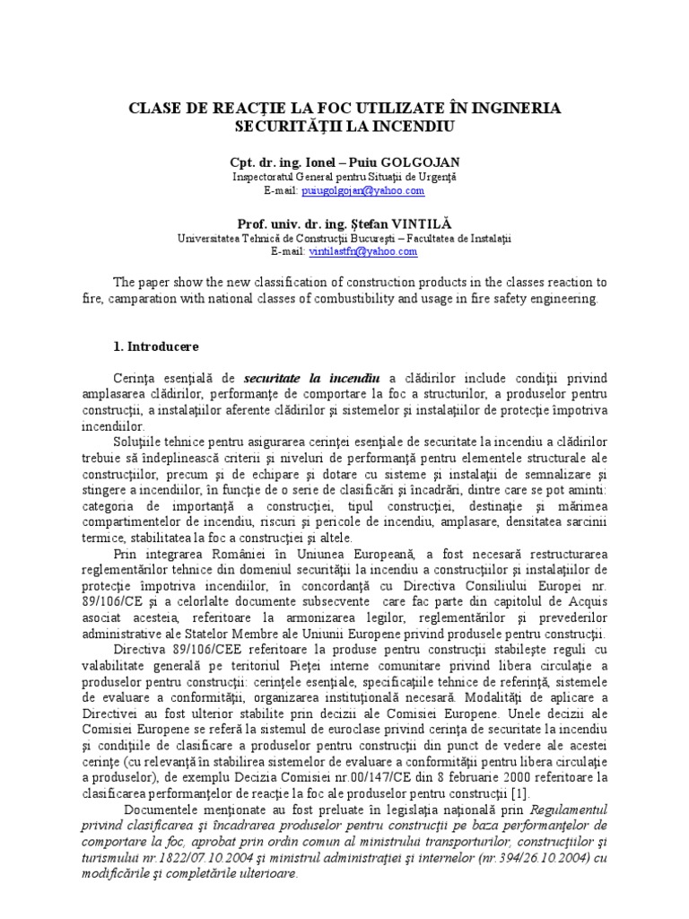 Articol Despre Clase De Reactie La Foc Ignifugare Conform