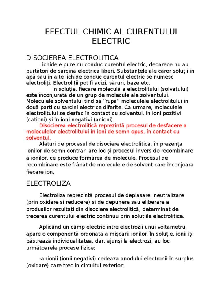 Efectul Chimic Al Curentului Electric