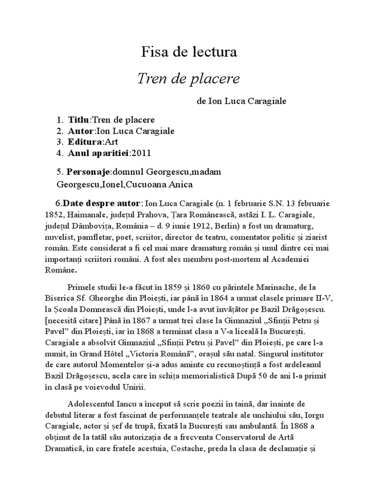Fisa De Lectura La Schitele Lui Ion Luca Caragiale Pentru Clasa A Vi A Repede Va Rog Dau Brainly Ro