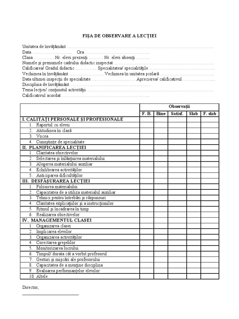 Fisa De Observare A Lectiei Inspectie Validare Doc