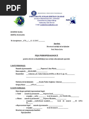 Fisa Psihopedagogica A Elevului Cu Ces Completata 2017