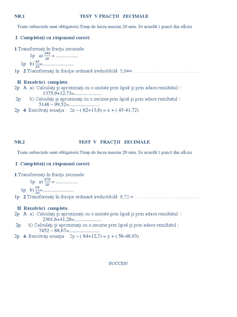 Clasa A V A Testul 1 Fracții Zecimale Full Youtube