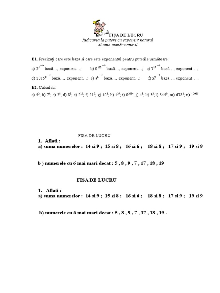 Fisa De Lucru Cu Puteri Clasa A 5 A