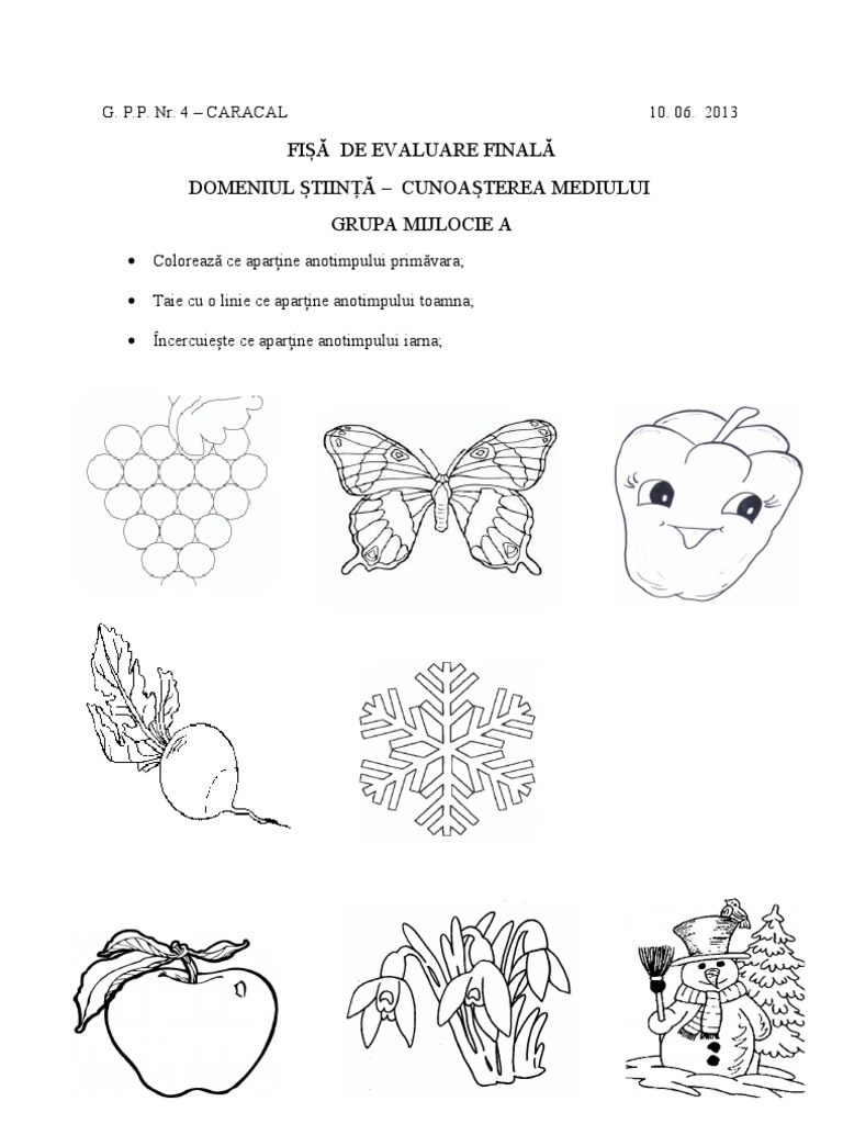 Fise De Lucru Gradinita Fise De Evaluare Finala Grupa Mica