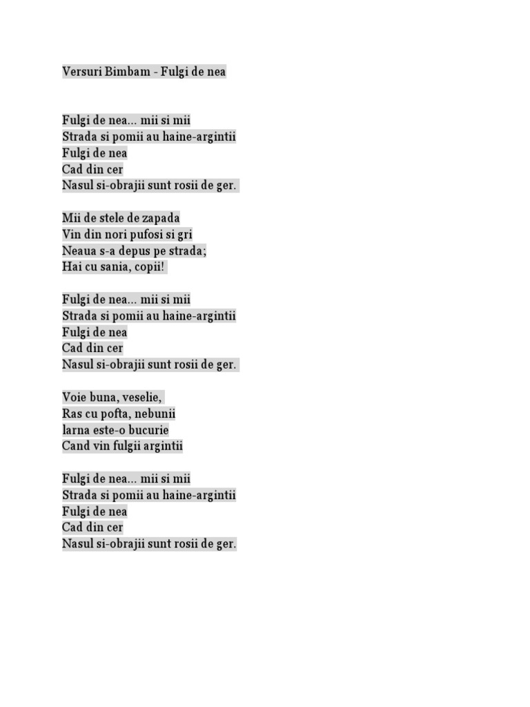 Fulgi De Nea Versuri