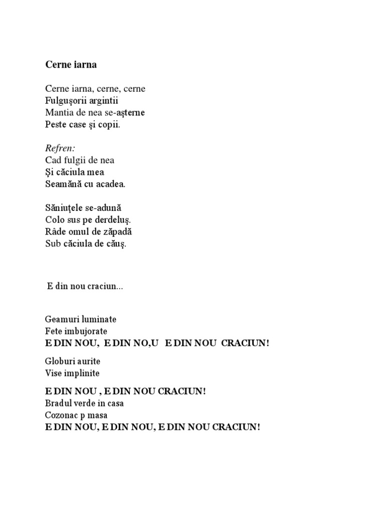 Versuri Cantece Serbare Iarna