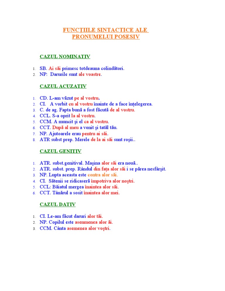 Functiile Sintactice Ale Pronumelui