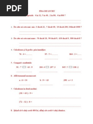 Fisa De Lucru Cu Impartiri