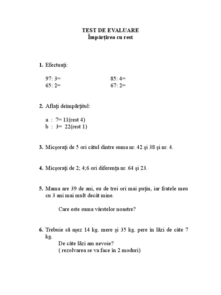 Test Impartirea Cu Rest