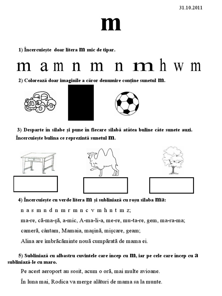 Fisa De Lucru Litera M Activitati Didactice
