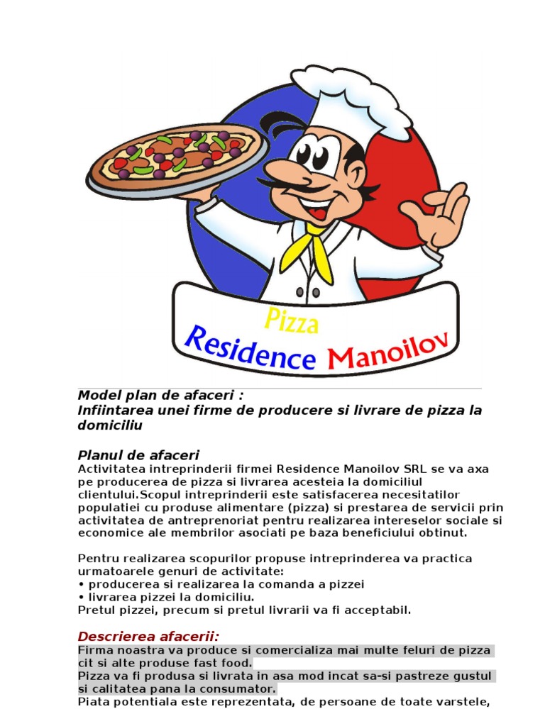 Pizza Hallo Plan De Afaceri 2000 Doc Planul De Afaceri Este