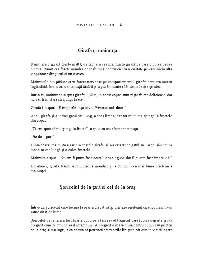 Povești Scurte Cu Talc