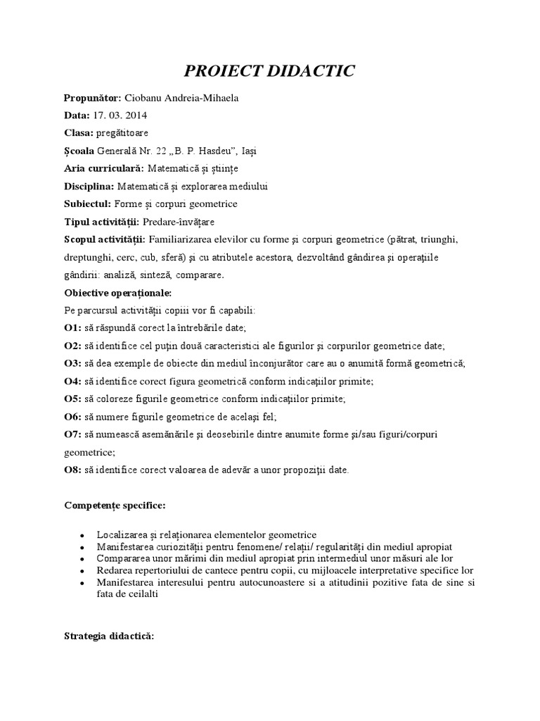 Proiect Didactic Forme Si Figuri Geometrice