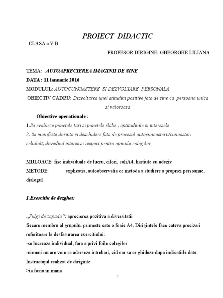 Doc Proiect Didactic Dezvoltare Personala Anca Nan Academia Edu