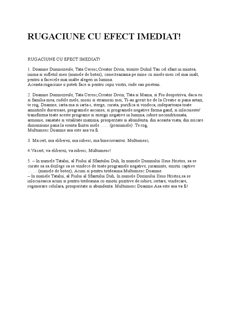 Rugaciune Cu Efect Imediat