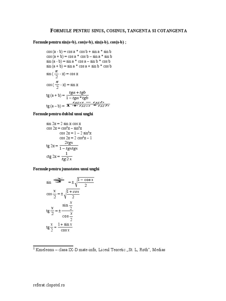 Sinus Cosinus Tangenta Cotangenta
