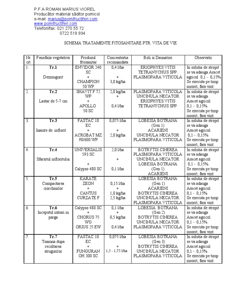 Schema De Tratament La Vita De Vie Erbicide Fungicide