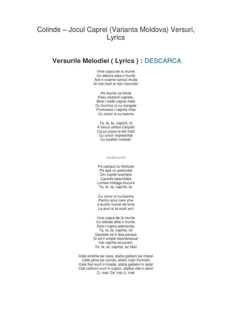 Capra De Anul Nou Versuri Capra Ta Ta Ta Caprita Ta